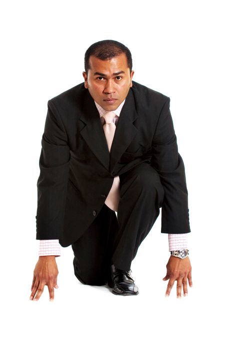 Cyber business human with a monitor screen and computer code on the display