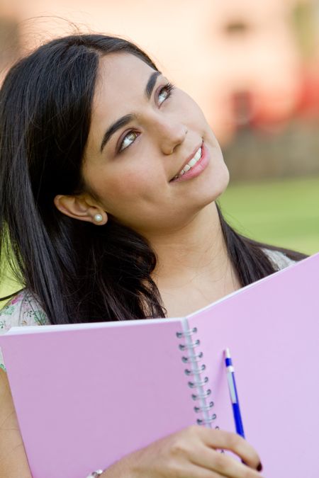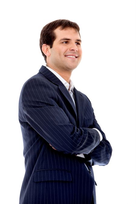 young business architect making notes on his pad over a white background