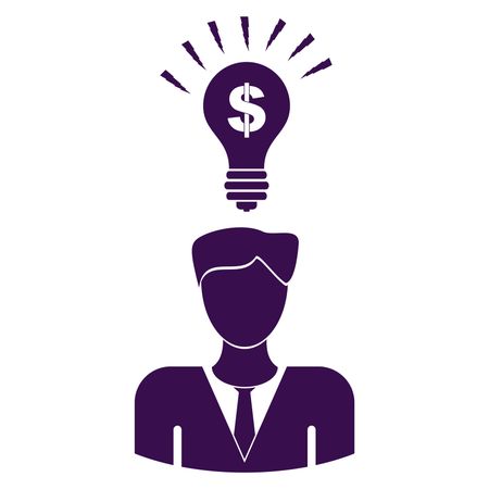 Vector Illustration of Man with Idea Icon in Purple