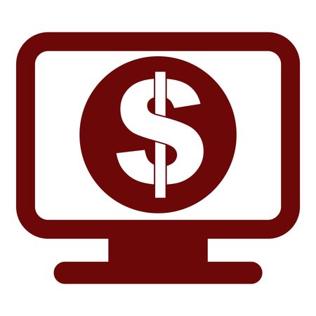 Vector Illustration of Monitor with Dollar Icon in Maroon