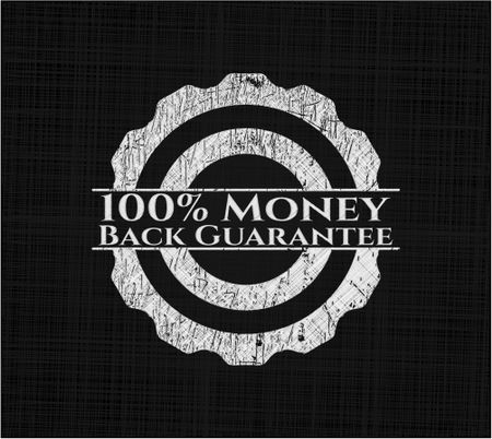 100% Money Back Guarantee chalkboard emblem written on a blackboard