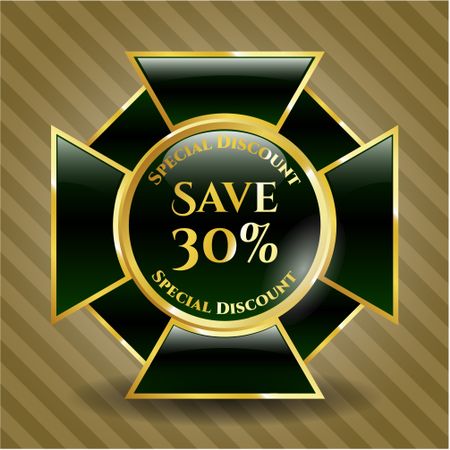 Save 30% gold shiny emblem