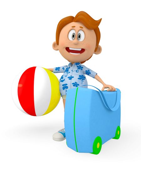 3D boy going on holidays looking happy - isolated over white