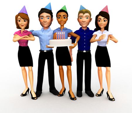 3D Business group celebrating a birthday, anniversary or promotion - isolated