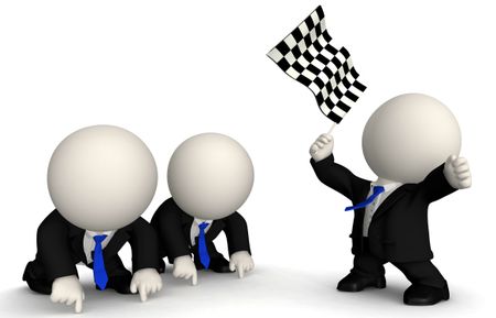 3D business men racing - isolated over a white background