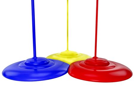 3D color paint in yellow, blue and red - isolated over white
