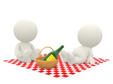 3D couple having a picnic - isolated over a white background