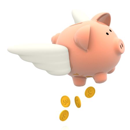 3D Elusive savings flying away in a piggybank - isolated over a white background