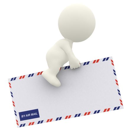 3D guy flying on an envelope - air mail concepts