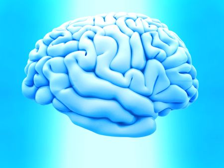3D human brain from the side over a blue background