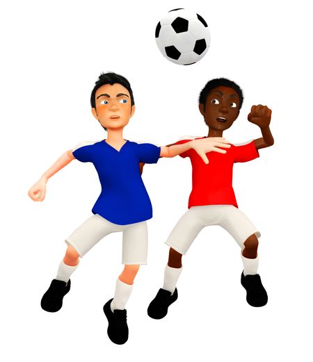 3D Male football player fighting for a header ? isolated over white