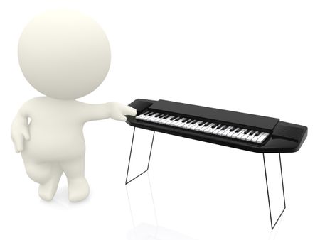3D man with hand on keyboard isolated over a white background