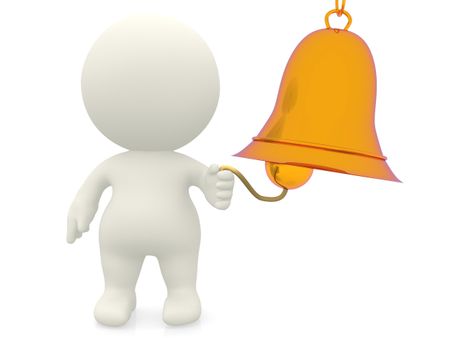 3D man ringing the bell - isolated over a white background
