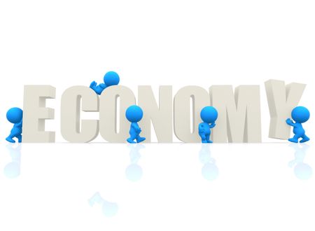 3D man with word Economy isolated over a white background