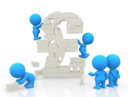 3D men assembling block pound isolated over white