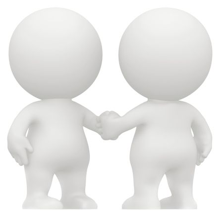 3D men handshaking isolated over a white background