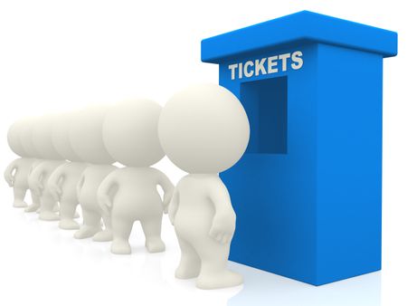 3D people waiting in line for tickets - isolated over white