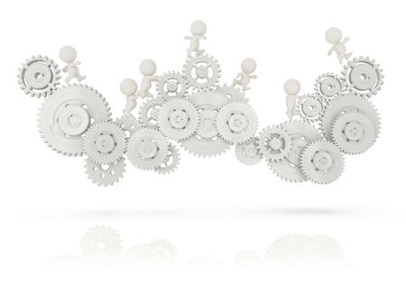 3D people working together assembling cogwheels - 3D teamwork concepts