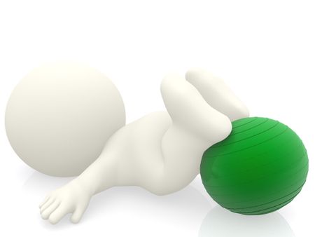 3D person practicing pilates with a ball isolated over white
