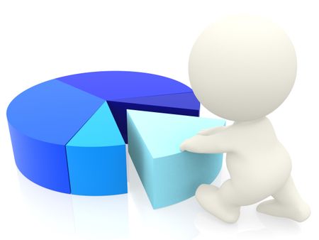 3D person pushing a piece of a pie chart - isolated over white