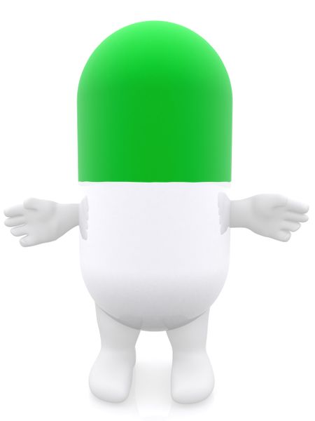 3d pill with arms and legs isolated over a white background