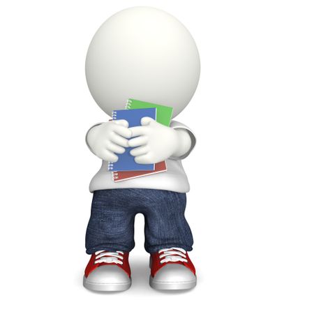 3D student with notebooks - isolated over a white background