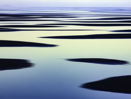 Abstract of sandbars and large tide pools on the Pacific coast of Olympic Peninsula in Washington, USA, for themes of nature, repetition, serenity, the environment (one of a series)