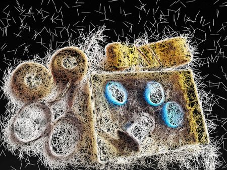 Abstract of sewing kit with scissors and folded tape measure