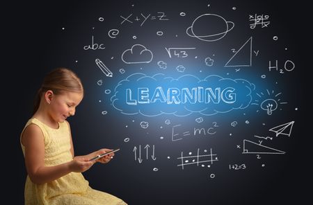 Adorable girl using tablet with educational concept