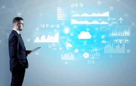 Adviser standing and presenting economical results and report of a multinational company