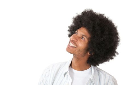 Afro man daydreaming - isolated over a white backgorund