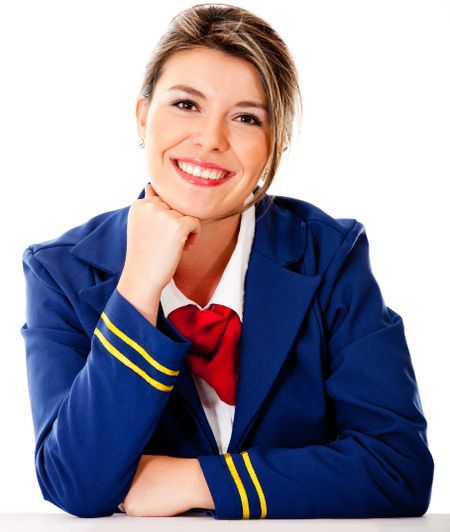 Air hostess smiling - isolated over a white background