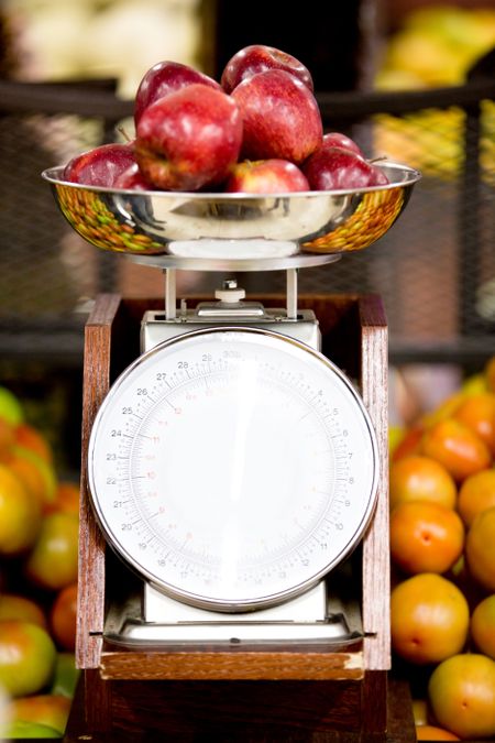 Apples on a weight scale at the supermarket
