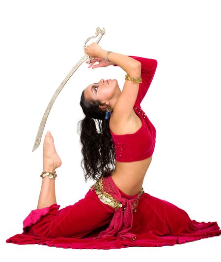 arabic dancer with a metal sword isolated over a white background