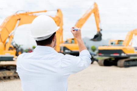 Architect writing with a pen at a construction site