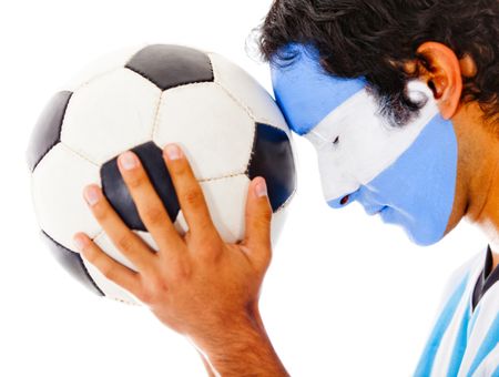 Argentinean football fan with flag painted on his face ���� isolated