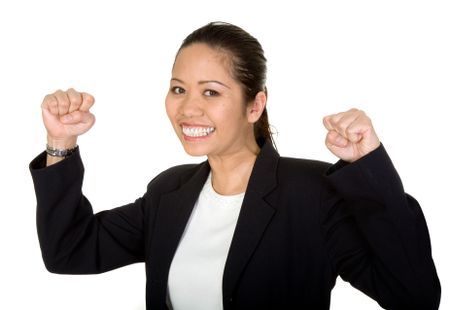 asian business woman very happy with her success over white