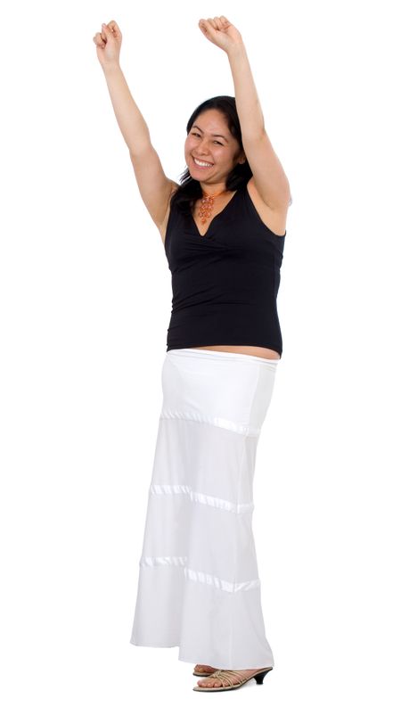 asian casual girl happy with success isolated over a white background