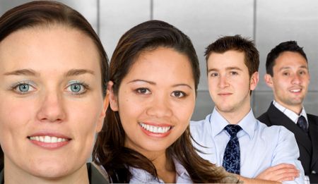 asian-european female partnership and their team with an office background