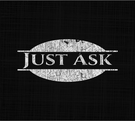 Just Ask chalkboard emblem on black board