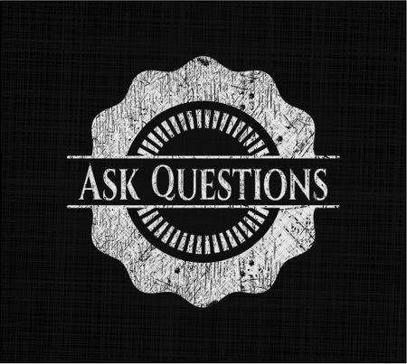 Ask Questions chalkboard emblem on black board