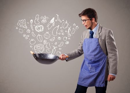 Attractive young man cooking vegetables