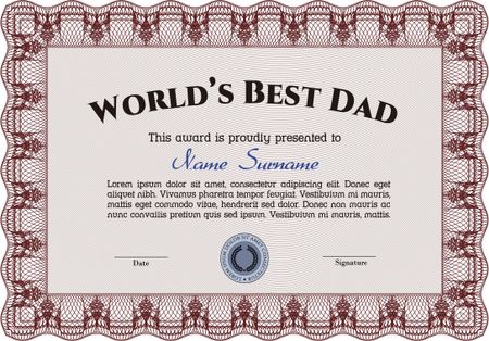 Award: Best dad in the world. Vector illustration.Printer friendly. Elegant design.