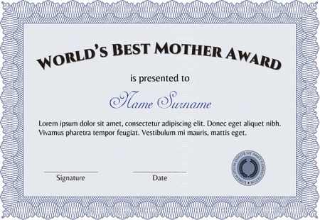 Award: Best Mom in the world. With background. Complex design. Vector illustration.