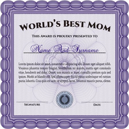 Award: Best Mom in the world. With great quality guilloche pattern. Sophisticated design.