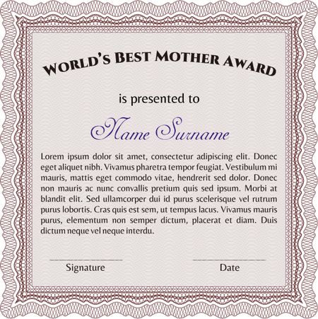 Award: Best Mother in the world. With great quality guilloche pattern. Sophisticated design.