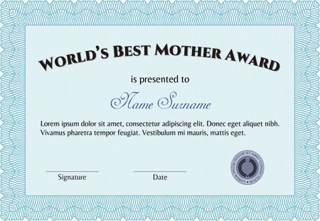 Award: Best Mother in the world. Sophisticated design. With great quality guilloche pattern.