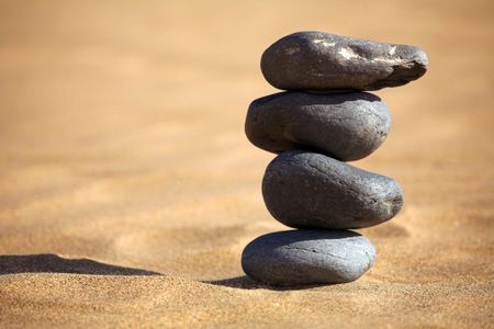 balancing stones on a sunny day at the beach