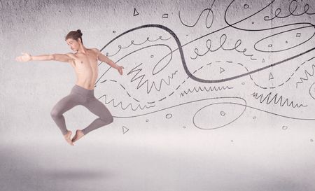 Ballet dancer performing art dance with hand drawn lines and arrows concept on background