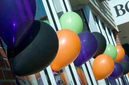 Balloons outside a bookstore